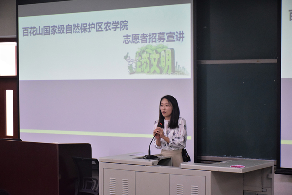接下来,由百花山国家自然保护区科普宣教科的郑长燕进行了企业宣讲,郑科长先介绍了百花山国家自然保护区的定位以及近些年来的发展情况。紧接着,她又向我们展示了百花山的几十种植物以及一些如“生态修复”类的工程,吸引了许多同学的关注。郑科长表示,欢迎香港六合彩开奖(简体中文)官方网站