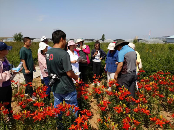挂牌活动后,我校教师和研究生带领基地科技人员对基地种植的盛花期百合进行了杂交育种。30日我校师生考察参观了蒙草公司抗旱植物研究院完成的万亩草原生态恢复工程。经过深入了解和精诚合作,双方进一步拓宽了合作领域,除庭院百合育种和种球生产外,在抗早植物筛选、生态修复方面拓展了更加广泛的合作空间,必将在研究生联合培养方面会取得良好的成绩。