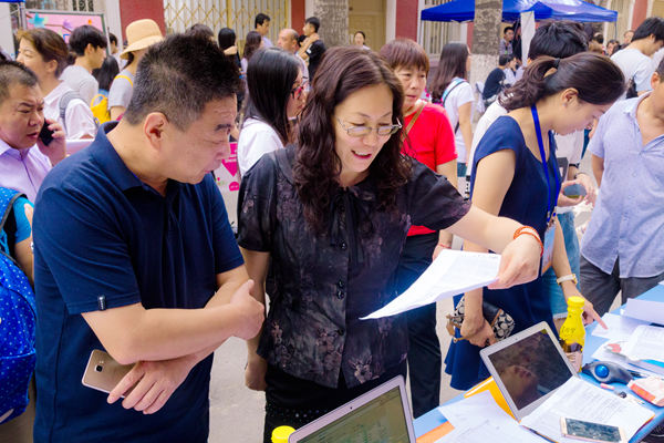 的新生同学们解答疑难。学院领导也来到迎新台前为新生答疑解惑。校党委书记杨军,校长王慧敏,副书记石勇等校领导也对我院迎新工作进行了指导。