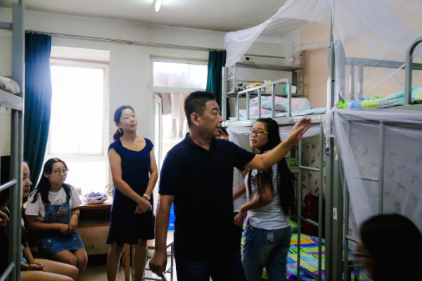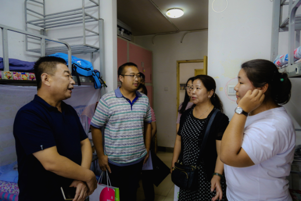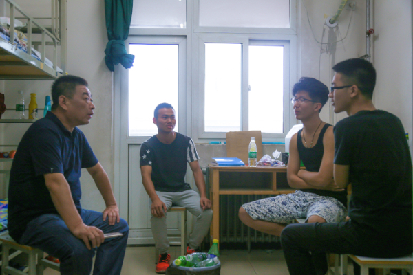 王万山书记首先询问了同学们来自何地,在了解到宿舍同学来自全国各地以后,王书记指出:“大家来自天南海北,一定会要学会彼此照顾,互相帮助,尽快适应大学生活。家在北京的同学也要尽到地主之宜,照顾好同宿同学。”随后王书记询问了同学们宿舍还有什么问题,检查了床架是否稳固、门窗是否能锁好等。