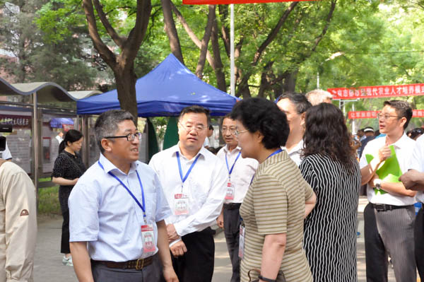 的展台前了解我院各专业的招生情况,详细问询遇到的问题和困难。