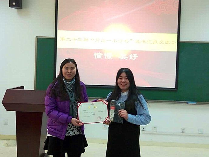 学生会主席刘学娅给优秀同学颁发了奖状,希望这次短暂的书中之行能为我们每一个同学带来内心的触动。