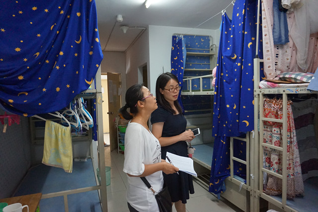 为保障暑期学生宿舍安全,香港六合彩开奖 团委书记王雪老师、辅导员满晓晶老师在宿管人员的陪同下,于2015年7月24日下午检查了学生宿舍。