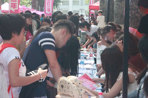 学生会成员,15级班级助理及学生志愿者在操场西侧的园林服务台做好了一切准备,翘首以盼新生的到来。
