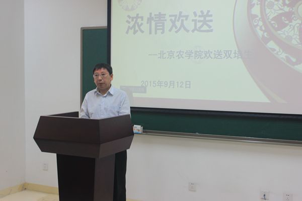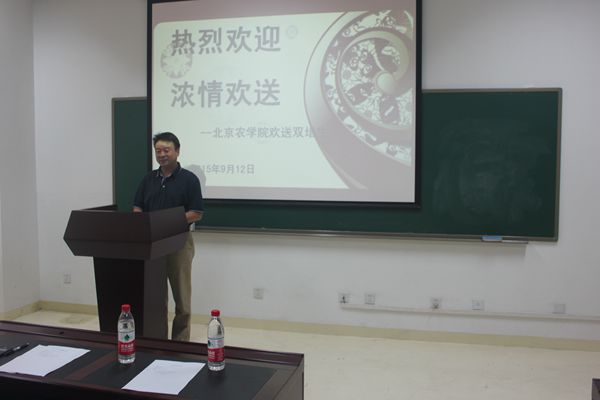 前往北京林业大学学习三年。2015年9月12日下午1点,在园林楼 101会议室,我们为双培计划新生举办了隆重的欢送仪式。出席本次欢送会的有北京农学院副校长范双喜,学生处处长韩宝平,教务处处长张喜春,副处长安健,以及双培计划的负责老师杨毅。教务处处长张喜春主持了本次欢送会。