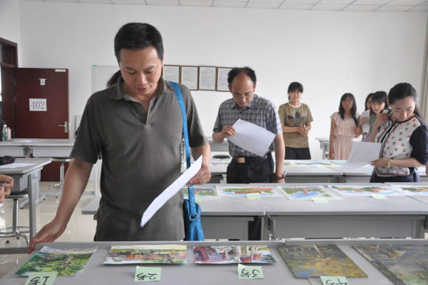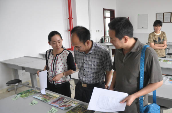 6月10日下午,“魅力园林”答辩活动结束后,香港六合彩开奖 学生会主席曹融邀请五位答辩指导老师前来园林楼402室为同学们上交的“手绘北农”的作品进行打分。打分过程中,几位老师细细地欣赏着同学们的画作,在每幅作品前都驻足许久,纷纷感叹有天分且肯努力的同学大有人在。付军老师仔细地从头到尾品味每幅作品三遍之多,才开始为所有的作品认真打分。最后,老师们肯定了同学们的才艺、功底,并鼓励北农学子继续加油。