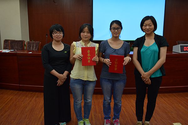 之后,主持人揭晓了最终比赛结果:潘羽洁,李艳捷两位同学获一等奖;孙润坤,崔潆心,汪傲琪,白璐遥四位同学获得了二等奖;邹晓鑫,刘鹏丽,李秋燕,罗韵,夏蔚玲,刘欣怡等六位同学获得了三等奖;薛喜娟,杜玥霞两位同学获得了优秀奖。比赛结果不仅显示出了选手们的实力,也使选手和观众们在比赛过程中获得了欢声笑语。