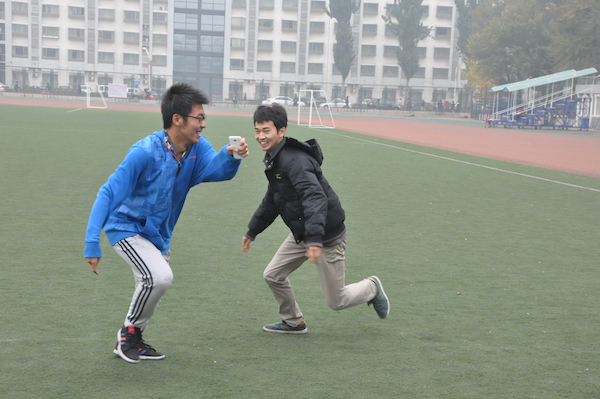 活动第一项——贴人。活动中,同学们在贴人时要叫出被贴人的名字,然后再寻找下一个被贴目标。过程中同学们热情洋溢,踊跃参与,笑声早已驱散了大家追赶中的疲惫。贴人活动让同学们之间有了更加充分的认识和了解。