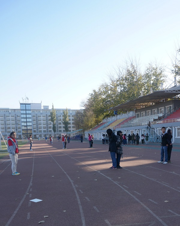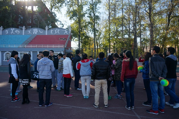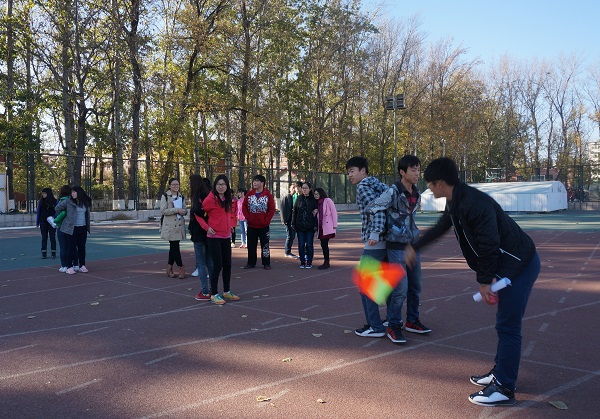 党建办公室主任王泽亮和各位部门主任、各支部负责人早早来到操场,大家微笑迎接陆续前来的各支部参赛人员,组织同学们有序地进行比赛。各个学院的10名同学两人一组,20米一间隔,平均分布在100米的塑胶跑道上。活动开始,两个人背对背,将皮球夹在背后,当发信号的彩色旗子一挥动,大家每两人互相背向黏在一起,死死地夹着球并肩横行,生怕皮球掉落或自己的小分队落在别人后面,一张张涨红的脸上写满了兴奋。接力环节也是激动人心的时刻,等在前面的同学们对先夹球而来的战友们已经翘首以待,一旁监赛的同学也屏住呼吸,全神贯注于大家传球的动作。100米的战线上,各个学院的战斗队伍进行着激烈的较量,有的学院带来的啦啦队小组在跑道外时刻跟进自己战友的比赛进度,为他们加油助威。午后寂静的操场,因为有这样一场热闹的比赛而生动和鲜活起来。