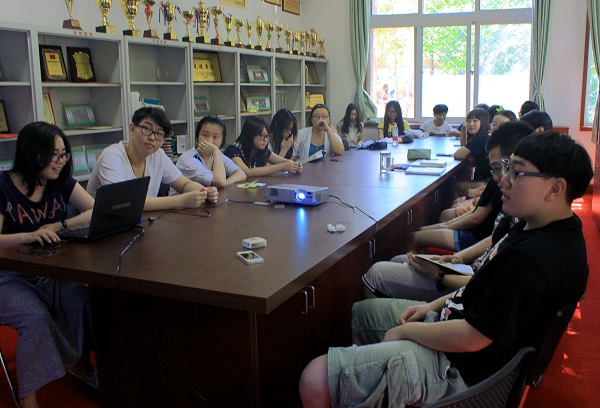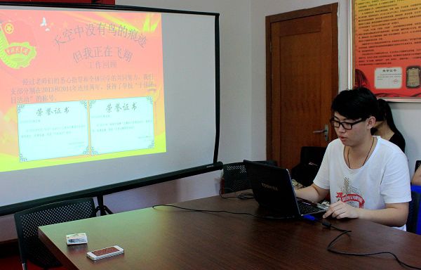 班会上人人积极活跃,这一刻,大家在此反思,强迫、督促自己进行深深的反省,为今后更好的发展铺路——有的表示学习专业课程使自己充实、快乐,有的感悟自己申请创业收获大,有的感慨作为社团管理者的磨练使自己变得更加成熟稳重,有的和大家分享了自己“冲突后的反思”,有的表示两年时间的磨合使自己更加珍惜舍友间的情谊……身后一排排集体荣誉奖杯闪闪发光,陈列柜上展示着往年园林学子创下的辉煌——创意弹簧椅、锡纸画专利、信封花盆等,在团委优秀教学实践基地这个集中展示学生优异成绩的特殊场地,一颗颗年轻的心随青春飞扬。