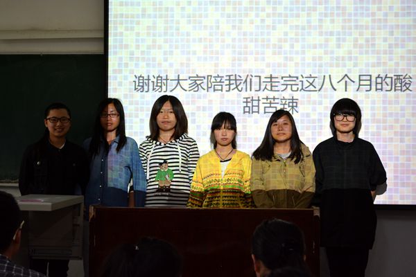 在宿舍展示中,第一组E7A506以图片展示为主,记录了六位同学在不满一年的时光里,一起经历过的温暖。第二组的E7B306宿舍,同学们从心出发由love迸发出的团结、和谐、欢乐和活跃,无不让人羡慕。第三组以无缘由的笑声命名“哇啥啥”的E7A511宿舍,通过对三座城市,五位舍友的简单介绍,共同憧憬了美好的未来。第四组的E7B361宿舍,她们来自六个不同的城市,四个不同的民族,用视频诠释了那份从相识,相知,相惜,到相依的友谊。第五组一个充满爱的E7A520宿舍,两位同学用PPT展示让大家熟悉了会说不同的语言,有不同的爱好,性格迥异,温柔细心的六个姑娘。第六组的E7A512宿舍,一组组图片,阵阵欢笑声中显现出那份无需多言的友谊。