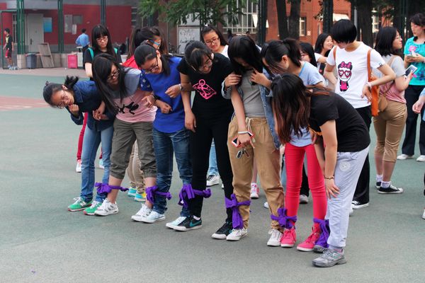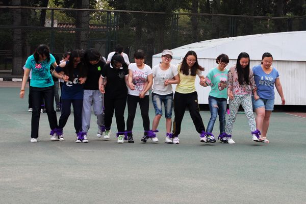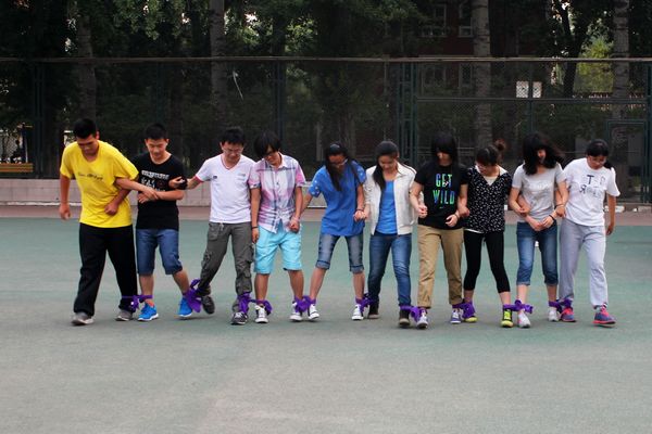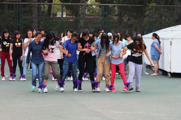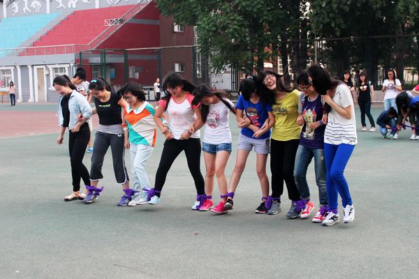 在一片欢声笑语中,比赛如火如荼的进行着。绑腿跑是小时候常玩的游戏,随着年龄的增长,离我们渐行渐远,此次的百人齐步走活动唤起了埋藏在记忆中的快乐。再看看进行着的比赛,有的队伍如行云流水,势如破竹的拿下这十几米的距离;有的队伍却似蹒跚学步,跌跌撞撞的艰难走完这段旅程。不难看出在此活动中需要同学们的团结、坚定的目标和默契的配合,唯有这样才能取胜。