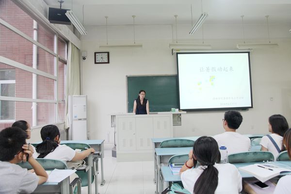 会上,王雪老师以PPT展示的方式,分四个部分为大家详细讲解了“暑期社会实践”、“大学生科研训练项目”、“大学生课外学术科技作品竞赛”以及“新学期的准备工作”,而且帮助同学们学习如何在学校信息平台查找相关的重要文件。她鼓励大家积极、科学组建学生团队,充分利用暑期社会实践开展课题调研,注重素材的积累,为“挑战杯”大学生课外学术科技作品竞赛和本科生科研训练项目奠定基础。王雪老师还强调了暑期放假安排和注意事项,提醒同学安全顺利度过暑假。
