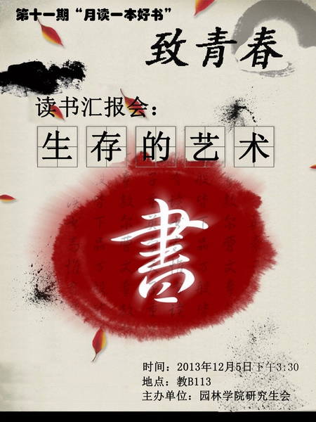 2013年12月5日下午在教B113举办了以“生存的艺术”为主题的读书汇报交流会。