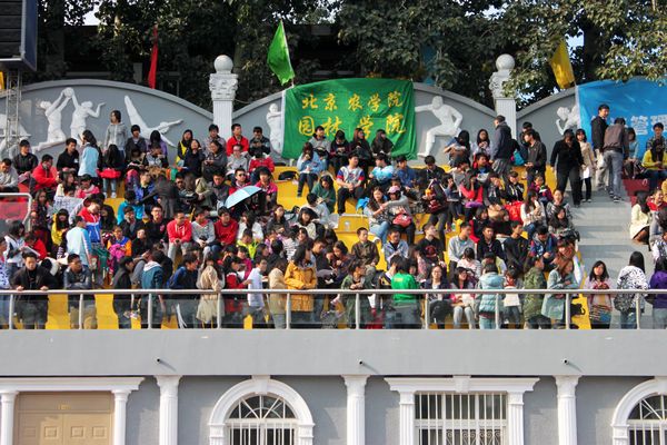 10月19日,2013级新生运动会在北京农学院操场拉开了序幕。比赛尚未开始,运动场看台观众席已座无虚席。大家精神饱满,热情洋溢。红色大鼓、扩音喇叭、塑料拍手等各种加油“装备”也纷纷就位。