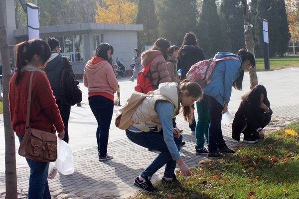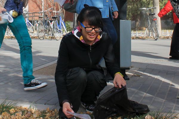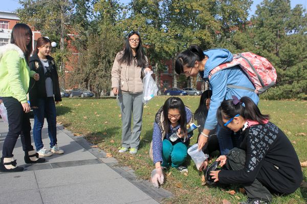 女同学们毫不嫌脏,一次又一次弯腰拾起烟头、食品废包装、广告等杂物。男同学们团结起来,配合收集垃圾、清扫走道。在香港六合彩开奖