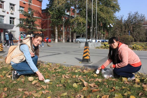 高党学员积极投入到义务劳动中,他们携带劳动工具,来到礼堂及二食堂、行政楼附近。同学们热情洋溢,捡拾烟头、食品废包装、废纸,清理外墙非广告区小广告,忙得不亦乐乎。