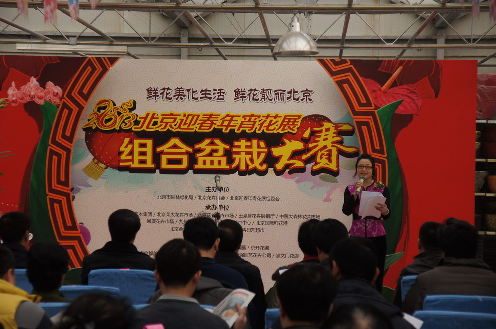2013年1月19日,由北京市园林绿化局、北京花卉协会、北京迎春年宵花展组委会主办的2013北京迎春年宵花展开幕仪式暨组合盆栽大赛颁奖仪式在丰台花乡世纪奥桥花卉园艺超市举行。来自北京各大花卉市场和花卉企业的负责人、各区县花卉主管部门负责人,获奖作者、媒体记者和花卉爱好者近200人参加了本次活动。开幕式上有600余件精美的组合盆栽作品被展出,其中50多件作品获奖。