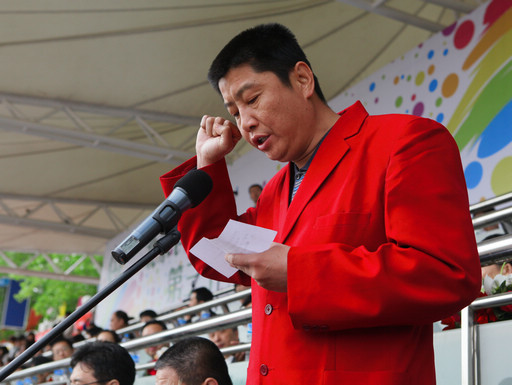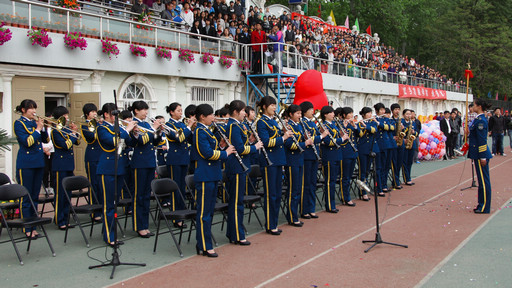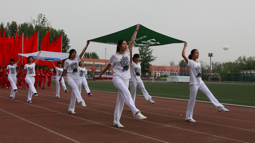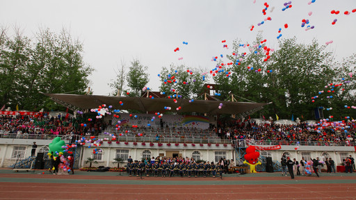 校长王慧敏宣布,第三十二届运动会正式开幕。场内顿时锣鼓喧天,五彩的礼炮,缤纷的气球共同装点着四月的田径场,场内全体师生起立欢呼,共同庆贺运动会的开幕。