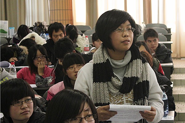最后,党总支书记王万山老师对 “班干部”这个职位提出了自己的见解,并与同学们进行互动交流。对于班委们提出自己在工作和生活中遇到的种种问题,王书记都做出了耐心幽默而生动的回答,班委们在愉快的氛围中受益匪浅。现场互动气氛极佳。