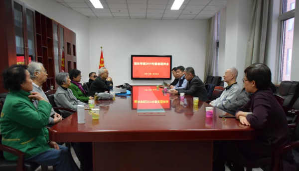 在园林楼611室召开2019年新春团拜会,学院离退休老同志和领导班子成员参加了本次团拜会,团拜会由党总支书记王万山主持。