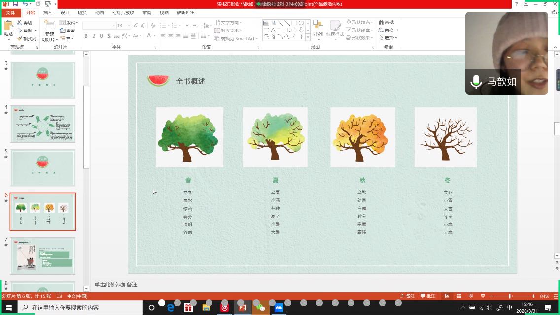 第46期读书汇报交流会在网络云端如期举行。本次读书汇报会以“春风颂”为主题展开交流,由于今年疫情的影响,我们得到了难得的安静时光。随着春天的到来,我国的疫情阴霾也渐渐散去,但是大家也不能掉以轻心,既然不能和三五好友出门踏青,既然身体不能远行,那就让我们读书吧,让我们的心灵遨游在知识的海洋里,乘风破浪!