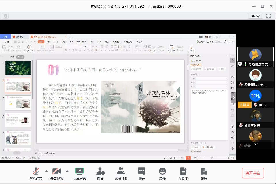 园林研究生会刘英伟同学主持了本次云端读书汇报会。