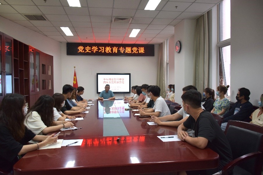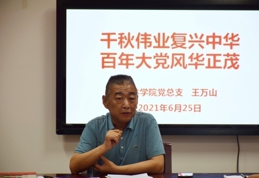 党总支书记王万山为本科生党员讲授了一堂《千秋伟业复兴中华,百年大党风华正茂》党史学习教育专题党课。