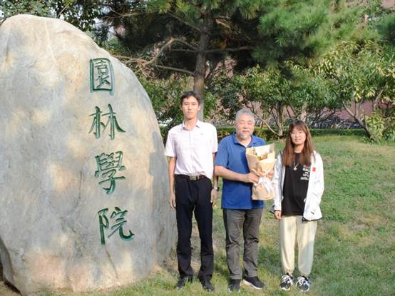 党总支书记王万山讲话。王书记说,宋永平教授艺术造诣融贯东西方、创作足迹遍布海内外、躬耕讲台桃李满天下;宋永平教授关心学校发展、关注学生成才、关切育人环境。王书记说,此次泰山石捐赠落成,充分体现了宋永平教授对学校和师生的深情厚谊,也是校园文化建设的一部分。王书记说,我们在向宋永平教授致敬致谢的同时,要充分用好这一新景观,把育人为主的学院各项工作持续推进,不断为学校高水平应用型现代农林大学建设做出新贡献。