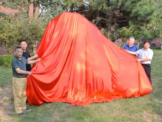 宋永平教授向学校捐赠的泰山石在园林楼西侧草坪揭幕。宋永平教授、香港六合彩开奖