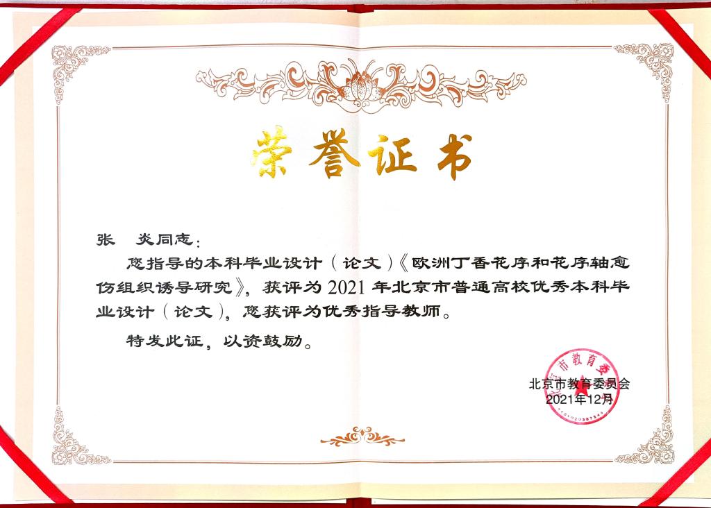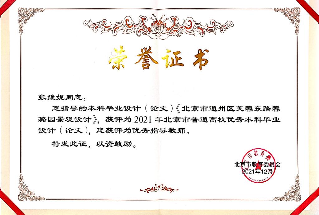 祝贺张维妮、高成琳、张炎三位老师获评2021年北京市普通高校优秀本科毕业设计(论文)优秀指导教师!