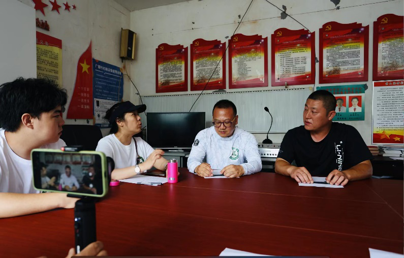 除了绘制主题墙绘,实践团还与村书记座谈并进行了现场调研。清芒谷团队提出以更新包装设计助力农产品销售的方法,两位村书记充分认可这一想法,大家围绕具体工作进行了深入探讨交流。