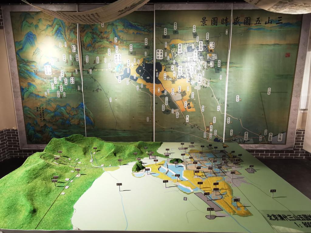 展览为广大观众带来了动人的沉浸式文化体验。“时空溯园”中的“园”与“源”谐音,是指从时间和空间维度追溯三山五园地区在一个多世纪的沧桑巨变和皇家园林中典雅朴茂的古代文化生活。在面积仅68平米的展厅中,“沧桑巨变”、“五园重现”、“园居日常”、“走向国际”和“继往开来”五个单元的内容由制作精美的图版、复原沙盘、语音讲解和纪录片共同呈现;纱幔吊顶、稻穗绿植和舆图名画烘托出了浓厚的艺术氛围。