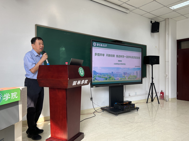 2022年9月3日,北京林业大学林学院院长贾黎明教授应邀为我院教师举办题为“多措并举,不断创新,推进林学一流学科高质量发展”的学术讲座。