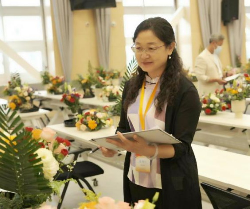 侯芳梅还担任了于8月底在湖北武汉闭幕的2022年全国职业院校技能大赛高职组花艺赛项的专家评委工作。此项大赛是由教育部发起并联合多部门以及有关行业组织、人民团体、学术团体和地方共同举办的一项公益性、全国性职业院校师生综合技能竞赛活动。来自全国28个省、自治区、直辖市的54支代表队参加了为期3天的插花花艺赛项的角逐。侯芳梅经北京市教委推荐,作为北京地区专家评委参加了本次大赛的评审工作。