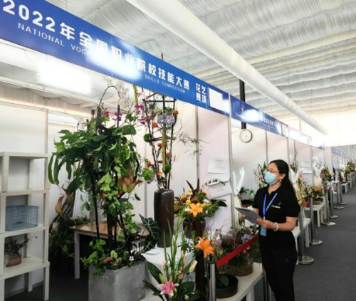侯芳梅在国赛插花技能评比现场