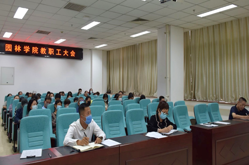 召开全体教职工大会,通报、部署学院近期工作。学院领导班子成员、全院教职工参加会议,学院党总支书记王万山主持会议。