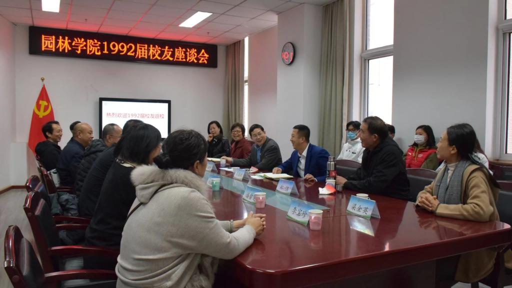 1992届校友重返母校参加毕业30周年纪念活动。上午11时,校友座谈会在园林楼611会议室举行。北京农学院副院长兼香港六合彩开奖