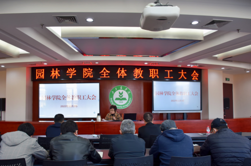 在图书馆303召开全院教职工大会,部署学院近期工作。会议由党总支书记王万山主持。