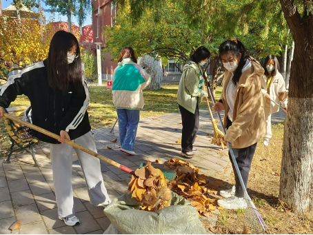 同学们拿起劳动工具,分工合作,劳动现场热火朝天。通过清扫落叶活动,大家还认识了校园内的各类树木,也亲身感受到了不同树木的叶片在秋季的变化,也学习了很多的专业知识。