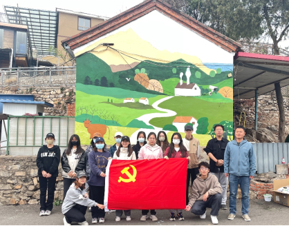 党总支组织学生党员和入党积极分子来到平谷区金海湖镇东马庄村和小东沟村,发挥专业特长,为村中老旧墙体进行墙绘美化。
