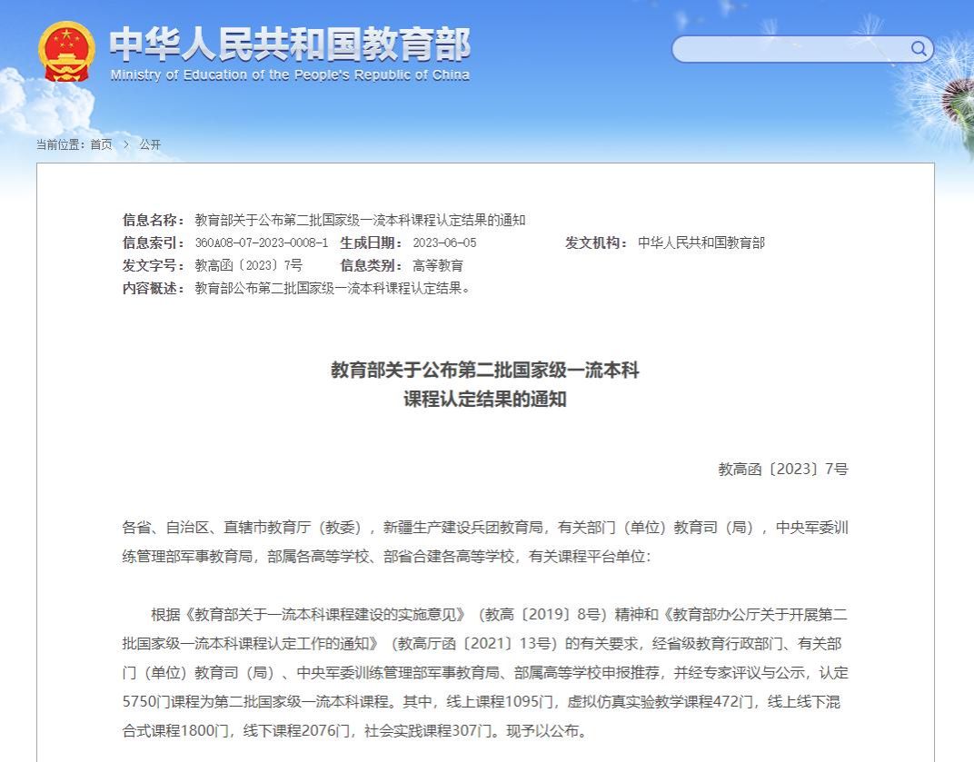 近日,在主题教育深入开展之际,教育部公布了第二批国家级一流本科课程认定结果,我院王文和教授主讲的《植物学》获评线下一流课程。