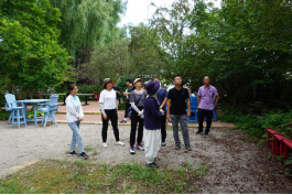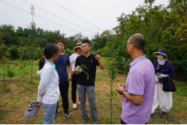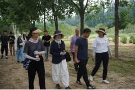 海棠种质资源库副总经理李素丽、生产科科长席燕敏带领团队成员对种质资源库收集保存的种质资源进行了参观考察,详细介绍了海棠种质资源库收集保存的观赏海棠品种特点、优势以及目前主要种质创新工作。