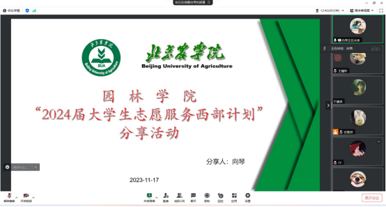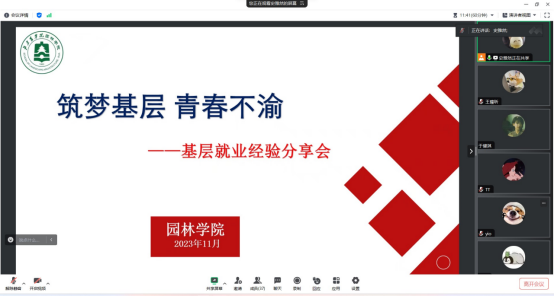 举办了基层就业毕业生经验分享会。分享会上邀请2023届林学专业本科毕业生、2023年北京市大学生志愿服务西部计划志愿者向琴,2023届风景园林专业研究生毕业生、香港六合彩开奖(简体中文)官方网站