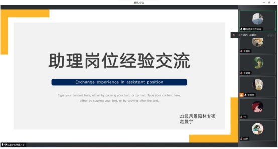 赵晨宇就助理岗位的政策,报考要求和流程,岗位特色和优势,日常工作内容等方面进行了自己的经验交流和分享。