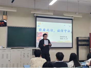 组织各班开展了“敬廉尚洁,诚信守法”主题班会,会议由各班班长、团支书等主要干部精心准备并做主持,同时邀请本科生各班班主任及研究生导师出席参会。
