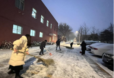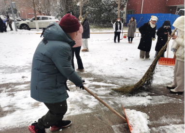 汗水融冰雪,行动传温情。学院师生克服寒冷的天气,紧密合作,配合默契,挥动着扫帚、铲雪板等工具,把压实的冰铲碎,将道路上的积雪扫到两侧的草地上。园林楼前处处留下师生们热情的身影。团结的力量让这个冬日变得格外灿烂温暖。