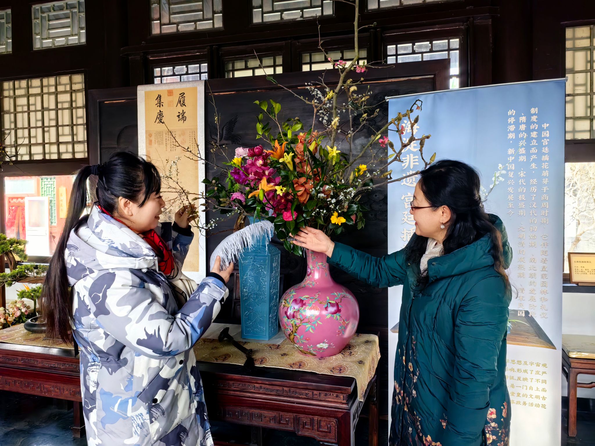 为迎接龙年新春佳节,传承与弘扬节庆插花文化,“花开颐和”首届岁朝插花展赛在颐和园举办,此次岁朝插花展赛是颐和园第十三届“傲骨幽香”梅花、蜡梅迎春文化展系列活动之一。展览时间为2024年2月5日——2月19日;展览地点在颐和园耕织图水操学堂。