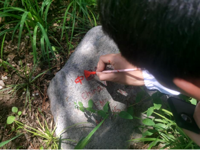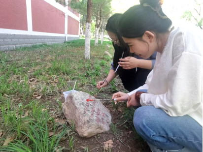 同学们充分利用环境设计专业优势,带着画笔和颜料,分组对7块友谊树的校园文化石进行修复,他们用湿布将文化石上的文字擦拭干净,用画笔沾上红色颜料细致地为每一个文字描红。经过认真地描绘,在书写的同时,同学们加深了对学校的历史和文化的认识和了解。
