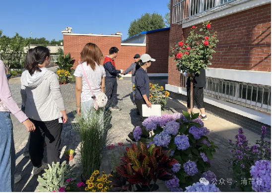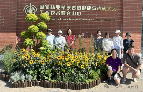 艺术设计系王亚英副教授带领的2021级风景园林的同学们一早就开始忙碌,他们把实践课搬到了国家林业草原古树健康与古树文化工程技术研究中心(以下简称“古树中心”),在绿树与红墙之间开始了富有创造力又体现专业能力的花境设计实践。